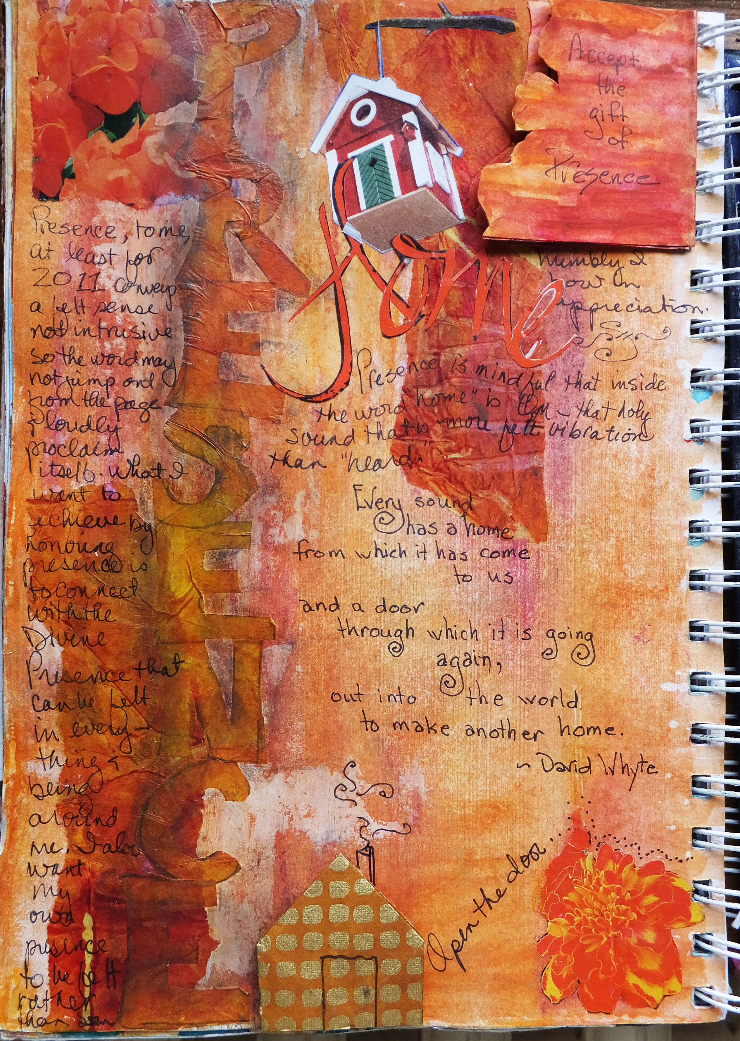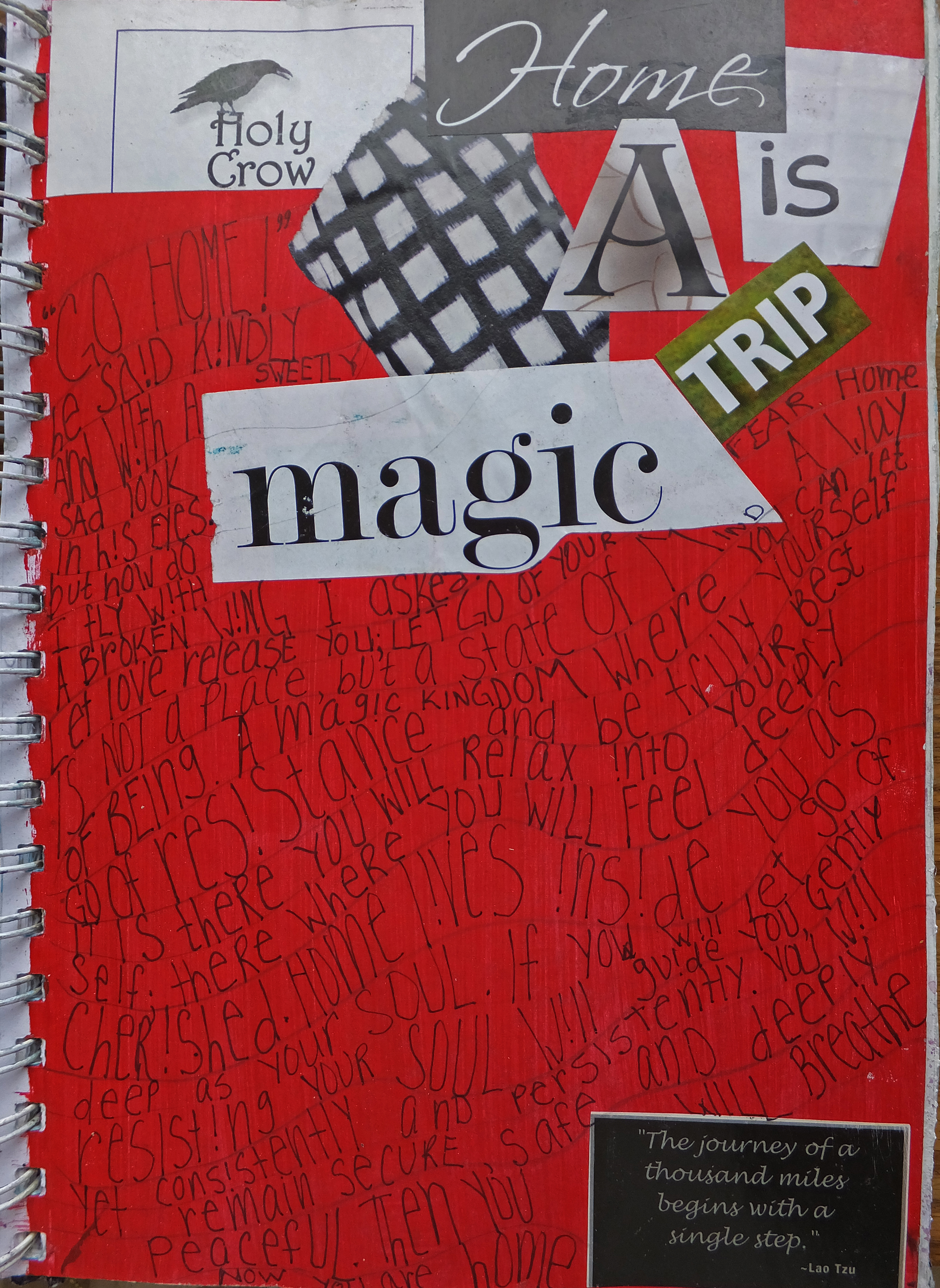 The process I am sharing in the image here is adapted from techniques developed by therapeutic writing advocates whose disciplines and sub-disciplines range from the fields of biology, neurobiology, psychology, narrative medicine to the humanities such as poetry, writing and art. “Journal Spilling” is not some willy-nilly process—though the actual pages may appear to be chaotic to the casual viewer—it is an interdisciplinary modality for insight and healing.
