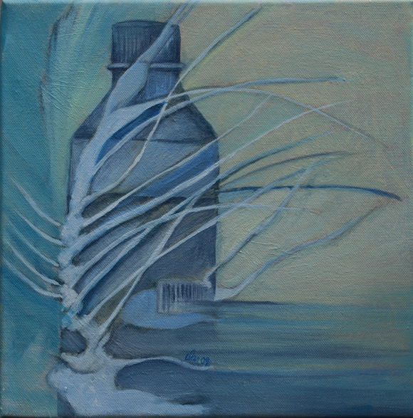 The imagery I’ve chosen relates not only to Garbage Island, but can also be looked at from other perspectives — our commodification of water, for example. The ubiquitous water bottle, once a symbol of health and vitality, has now become the opposite in the minds of many. It is a symbol of waste — it takes more water to make a small bottle than that bottle can hold. Again, I see irony; the bottles we create to hold the water we sell are the largest pollutants of the very water we need to survive.