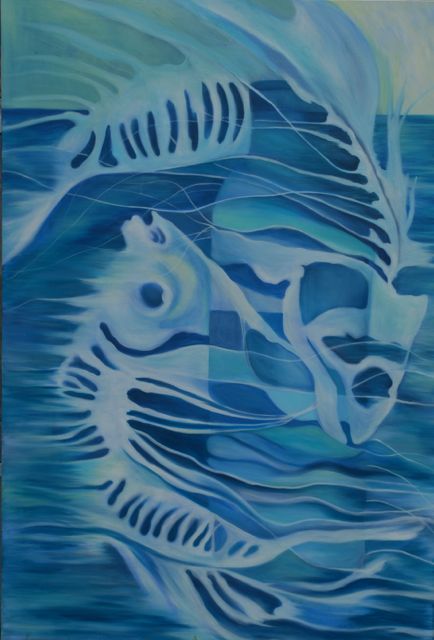 This series was created for a show called “Water,” the invitation for which came roughly around the same time that I heard about Garbage Island, a place in the North Pacific “where currents spin and cycle, churning up tons of plastic into a giant pool of chemical soup, flecked with bits and whole chunks of refuse that cannot biodegrade” (Vice, 2008). I was amazed to learn that the particles of plastic primarily composing this human-made island now outweigh the plankton. The few fish in this area are actually feeding on the bits of plastic that monopolize the waters. Isn’t it ironic that through these fish the plastic travels up the food chain? Humans end up eating the bigger fish that eat the fish that eat our garbage.